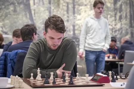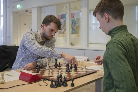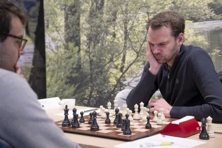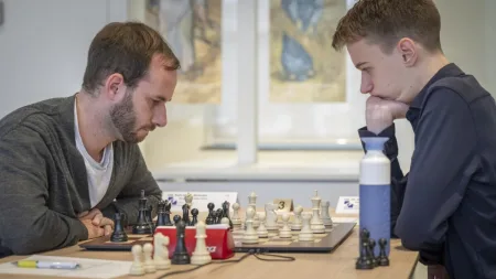 Sebastiaan Mueer met Wit zat rond de twintigste zet zwaar in de problemen tegen Brian Nijdam, maar deze laatste liet zijn voordeel verwateren en verloor zelfs nog.