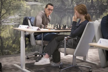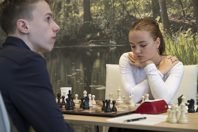 Machteld van Foreest had een gelijkwaardige positie tegen Arthur de Winter met beiden toren, Paard en drie pionnen.