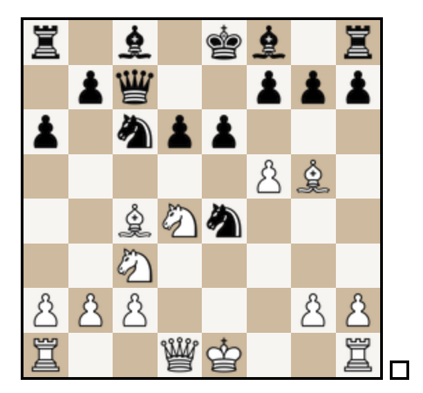 Na 5. f4 Dc7, wat nog wel bekend is, volgde 7. f5. De enige mij bekende partij hiermee gaat dan door met 7. … b5, en 7. …e5 lijkt ook niet gek, maar van Dael koos voor 7. Pc6, waardoor na 8. Lg5 e6 9. Lc4 een soort mengsel tussen de Najdorf , de Sozin-aanval en de Richter-Rauser ontstond. Dael blunderde echter direct: 9. … Pxe4?? Hier is het Paard te ver gesprongen. Hoe de partij afliep ziet u in de viewer onderaan deze pagina.
