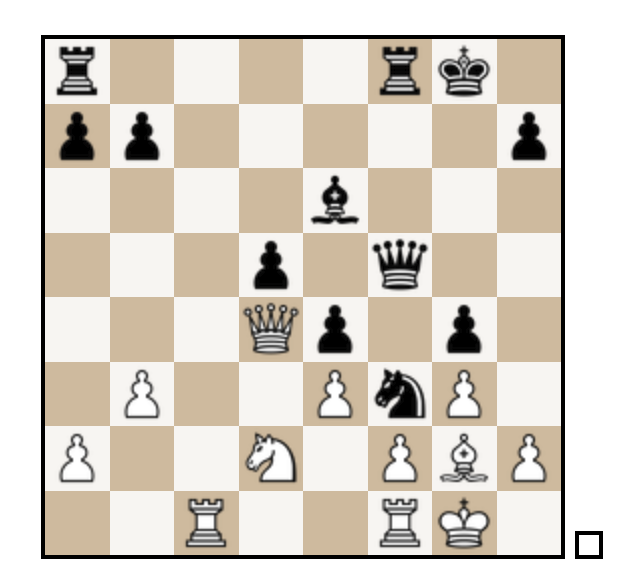 Nick Maatman had in wat de partij van zijn leven had kunnen worden een mat in 14 (!) in de hand met 32. Pg5, maar overzag dit en speelde Df5.