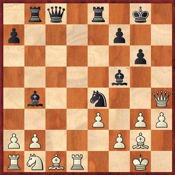 14.h3? Lh2+ 15.Kh1 Pxf2+! 16.Kxh2 Dxd4 is goed voor zwart. Maar Giri had gehoopt dat zijn tegenstander hierop in zou gaan. âIk denk dat mijn hartslag hier wel even omhoog ging, toen ik merkte dat hij zijn partij uit de Bundesliga van eerder dit jaar zou herhalen. Ik had daar iets gevonden dat naar mijn idee winnend was.â 14…Lc5
