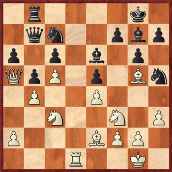 Spectaculair. Maar ook deze stelling had Shirov in die Bundesligapartij al op het bord gehad. 21.Pe4