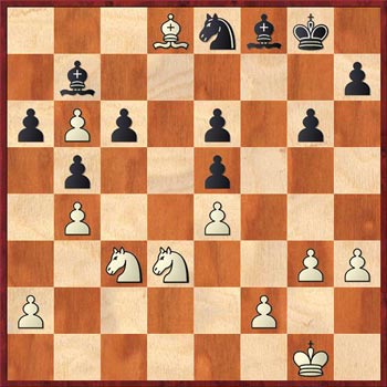 Aan 28…Txb6 29.Td8+ valt niet te denken. Wit staat nu gewonnen, maar voert het eindspel ook met harde hand naar winst. Wie zou dit niet alsnog verpesten tegen een doorgewinterde grootmeester? 29.Td8 Txd8 30.Lxd8 Lc8 31.Pe1 Pf4 32.Lg4 Lb7 33.g3 Pe6 34.Lxe6 fxe6 35.Pd3 Lf8
