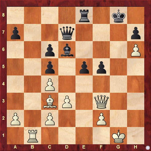 Here McShane took on f6, while on the retreat 22.Bc1 Lucas had prepared a little joke: 22…Bh6! with the point 23.Bxh6 Ng4 24.g3 Qh5, winning back the piece — still with a 0.00 position!