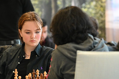 Luca Moroni beat Machteld van Foreest with Black. He managed to trade his queen for two rooks which in the end proved stronger.