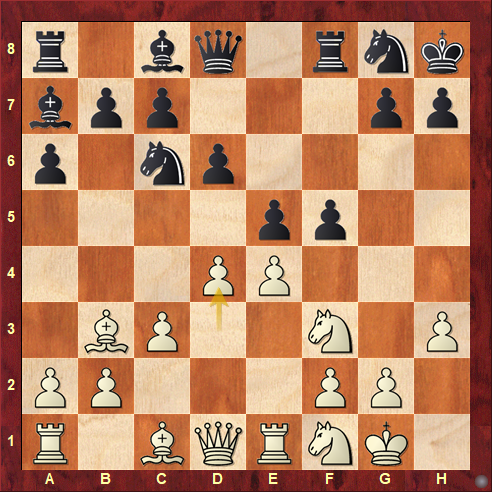 Here’s a nice position to resume our reports with. In a Winawer French against local hero Andries Mellema, GM Sipke Ernst played the rather careless 11.a4 which allowed an irritating knight sortie to b4: