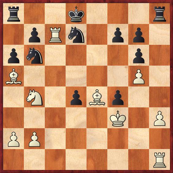 A beautiful little move. Objectively, possibly 27.Lxb7 was strongest, for example: 27…Pe5+ 28.Ke4 Te8 (after 28…Ta7 29.Lxb6 White captures everything, and at the end the knight on e5 is hanging) 29.Lxa8 Pxa8 30.Lxc7+ Pxc7 31.Kxf4 and White remains an exchange up after 31…a5 32.Pc6+.