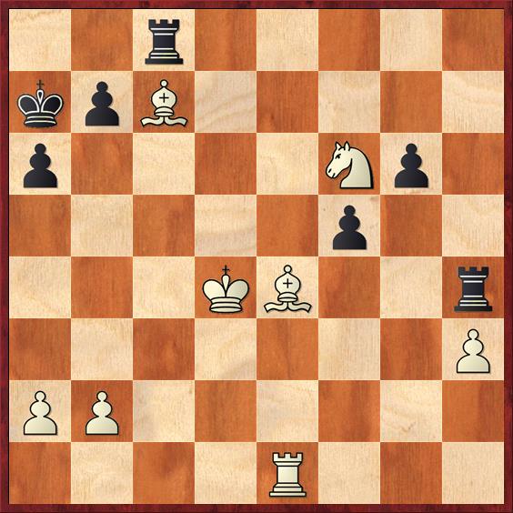 33.Pd5+ Kb8 34.Lxb6 f5 35.Lc7+ Ka7 36.Lb6+ Kb8 37.Lc7+ Ka7 38.Pf6 Tc8