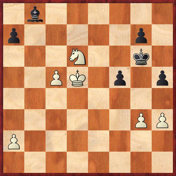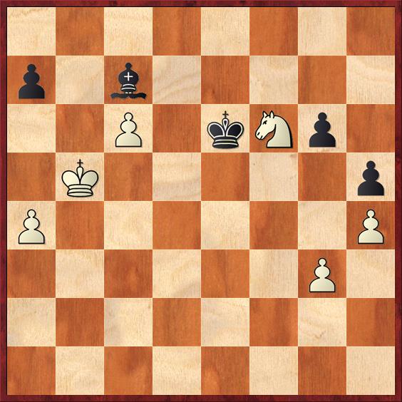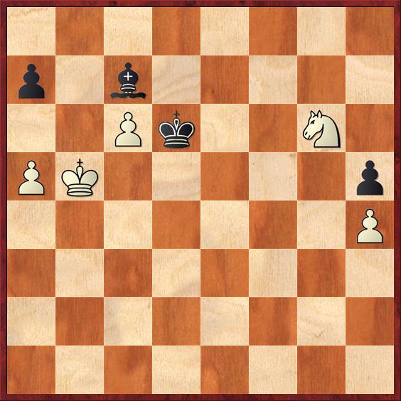‘Here I should have shouldered off his king with 40.Ke5!’, said Werle during lunch. Of course, 40.Ke6 is less good in view of 40…h4. After the shouldering of the black king White does play h3-h4, and then the bishop is no game for the king, knight and pawn.