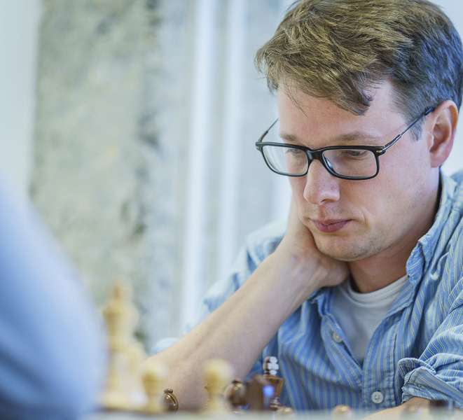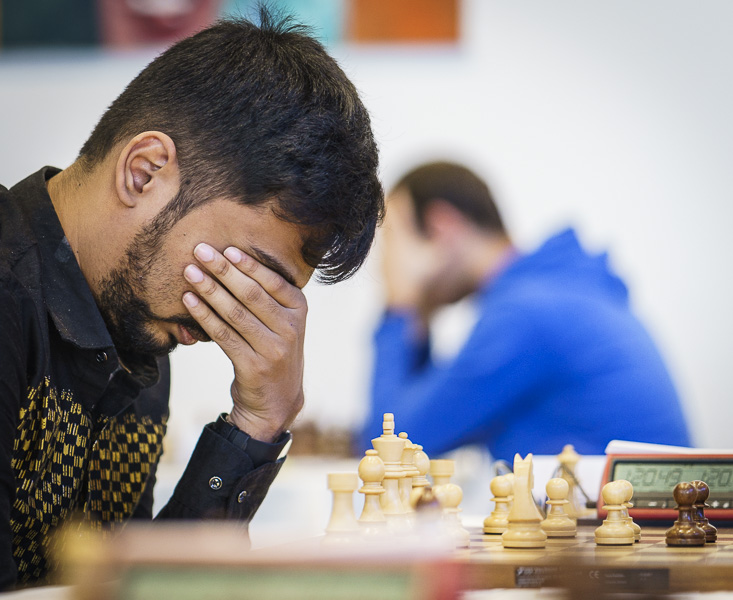 There were a few more upsets today. Valentin Buckels held Sipke Ernst to a draw – okay, the young German has already made some miles in our tournaments. But that the young Liam Vrolijk overcame grandmaster Das Debashis tactically in a difficult game was a bigger surprise. There was also a Dutch grandmaster who bit the dust: Harmen Jonkman went down in a major-piece ending versus Denis Mager due to several weaknesses. Richard Vedder, on the other hand, fought back after a few disastrous chess months with a draw against IM Nitin.