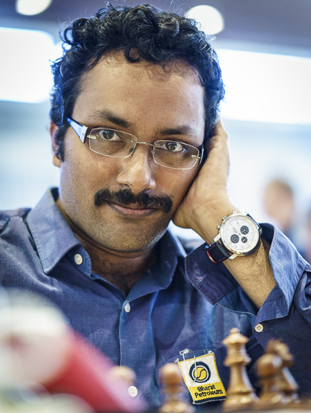 Babu Lalith had followed the game, and he thought that Black should have tried 23…c3! here, for example: 24.Qxc3 (24.bxc3? Bxa2!!) 24…Qxc3 25.bxc3 Nxf6 26.gxf6 h5 and Black is a tad better.