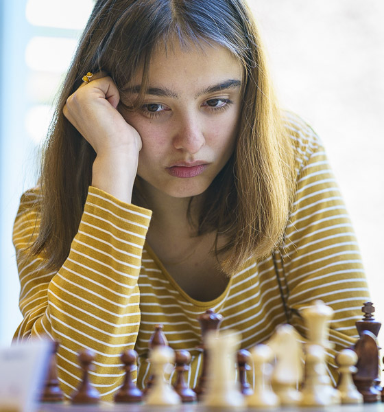 The audience was lucky on this sunny Sunday afternoon. Not only did they get two match games that were rich in content, but at the top board of the Open there were fireworks as well. Demre Kerigan, a Turkish chess player who has been playing in the Netherlands for years, wasn’t afraid of the attacking prowess of the open champion of 2015, Abhijeet Gupta. He took up the gauntlet in a sharp Sämisch Variation of the King’s Indian.