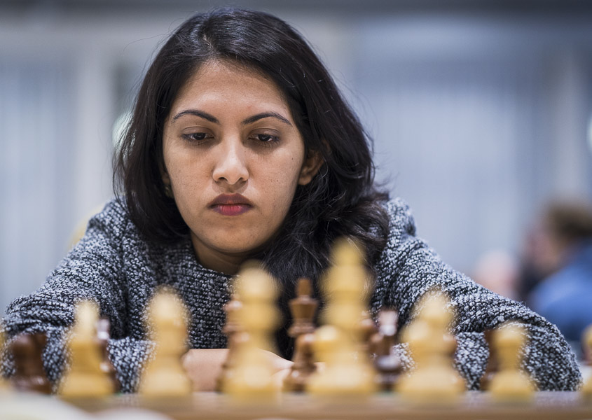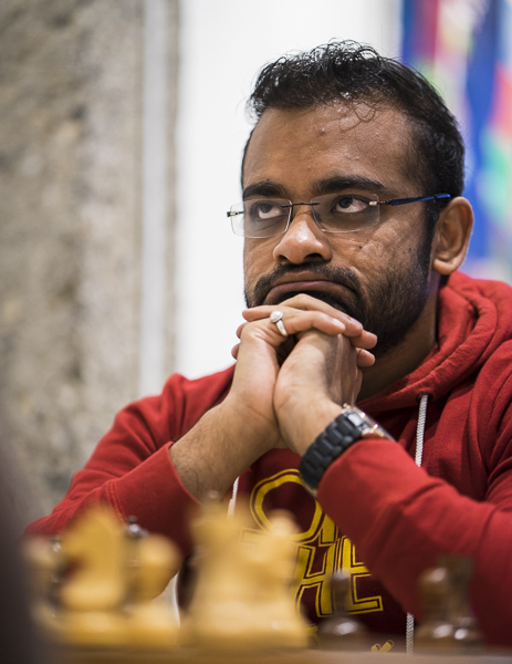 Abhijeet Gupta led De Jong almost noiselessly to a lost endgame, although the Frisian master mumbled afterwards that he thought his position had been OK. In order to keep track, Lalith had to beat his fellow countryman Sundar Shyam. He was helped by the fact that the white player attacked with reckless abandon.
