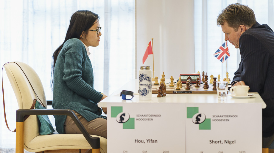 ‘Caveman chess’ was what Nigel Short called what had happened on the contiguous board. As said, his own second clash with Hou Yifan took a quite different course.