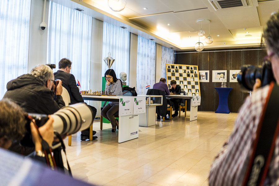 Het eerste duel der geslachten werd een grimmige strijd. Hou Yifan had het moeilijk, maar ze bleef overeind.