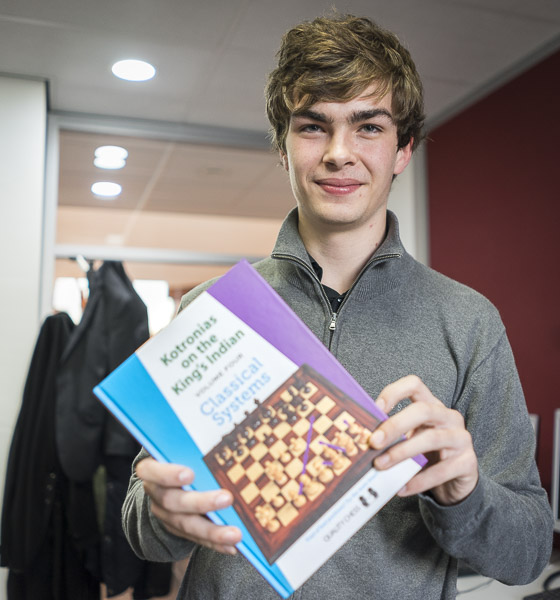 Van Foreest verloor ook zijn goede humeur niet. Kort na de partij kwam hij in de perskamer aanzetten met het boek ‘Kotronias vs the King’s Indian’ en poseerde daarmee zelfs voor de foto.
