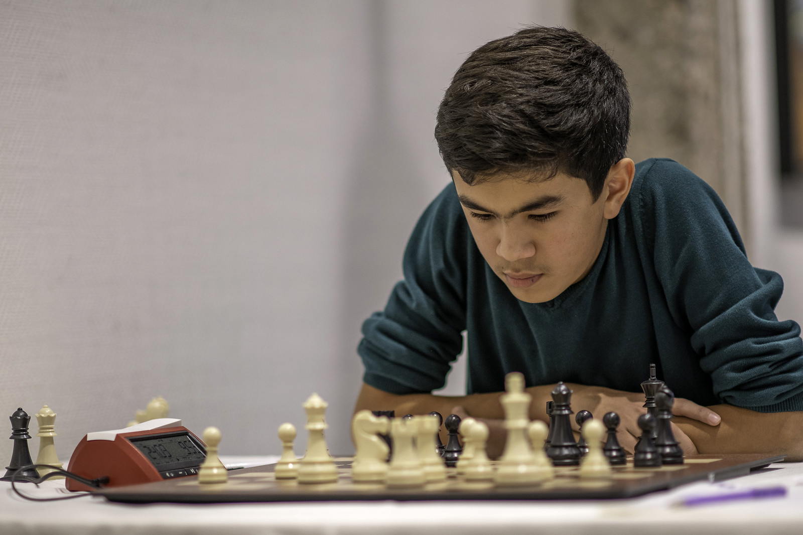 A magnificent start for the 13-year-old Uzbek, who said he had been a little lucky. ‘Also yesterday morning I was a little worse the first 30 moves, but then my opponent went wrong.’