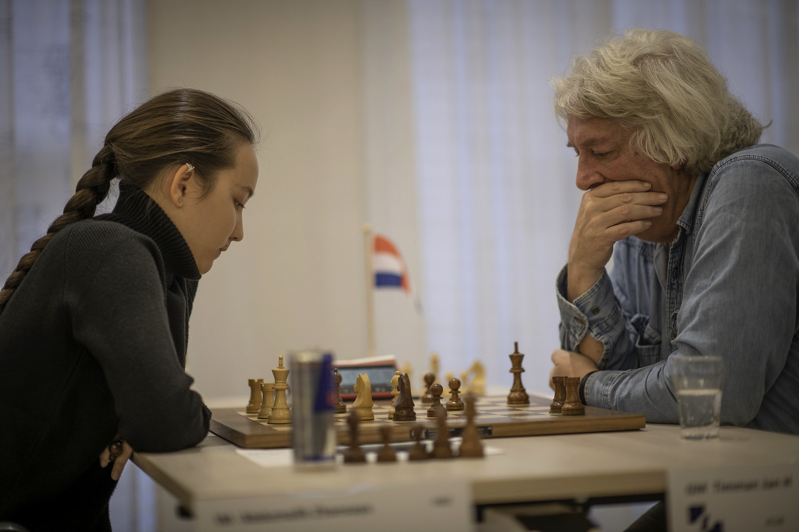 Schoppen is under big pressure now, as Ernst’s position really looks overwhelming. Another big Dutch youth talent, Liam Vrolijk, is also in trouble against young Viktoriia Kirchei (14), who is playing very solidly and powerfully.