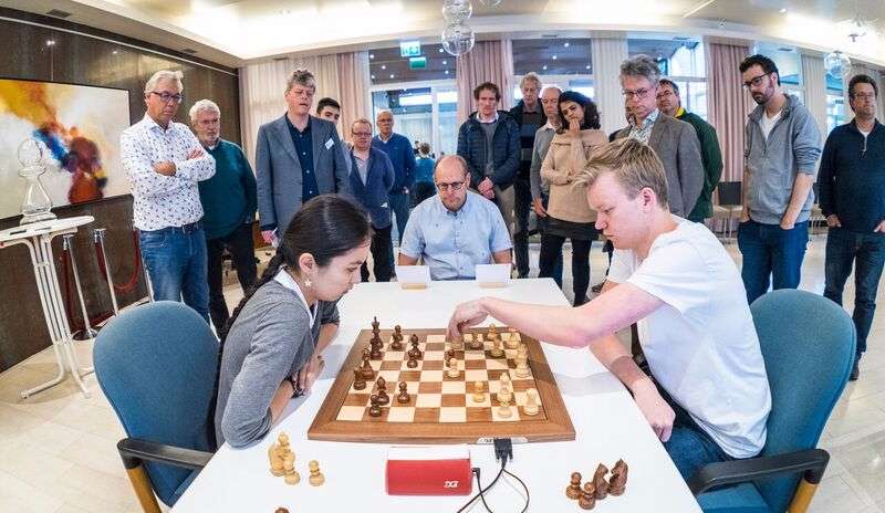 The 19-year-old Dutchman was attacking in a tricky first game but Saduakassova again defended quite adroitly and won. In the second game she won an exchange but Beerdsen acquired a few strong pawns for it. The crucial moment came on move 38: