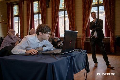 In the first online rapid game with Junior World Champion Parham Maghsoodloo, in the Statenzaal at the Drents Museum in Assen, Jorden van Foreest was pushing for a win with white in a knight ending, but the 18-year-old Iranian cleverly held the draw. The second rapid game is under way. Jorden has opted for a Ruy Lopez with 3…g6.