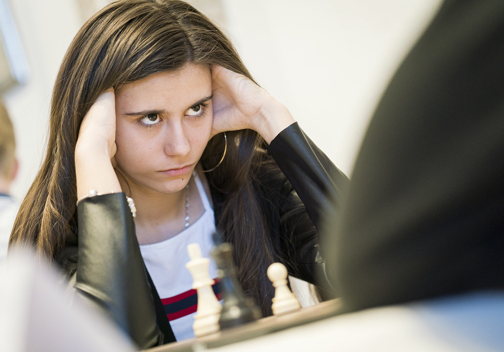 Since three days Viktoriia has a nasty cold, and she and her father also had a long journey from Moscow to here, flying via Helsinki. ‘I liked my game in the semi-final [with Javokhir Sindarov],’ she said, looking back (translated by her father). ‘I missed a nice victory there but my play was good and I was satisfied. My loss was maybe due to time shortage. About today’s game [with Jan Werle] I am not satisfied. I couldn’t get a good position from the opening.’ She works 4 to 5 hours a day on chess and her coaches are grandmasters Sergey Dolmatov, with whom she mainly solves chess problems, and Nikolai Chadaev. In the European Youth Championships she ended 5th after a final-round loss to the eventual champion: ‘The pressure became too much.’
