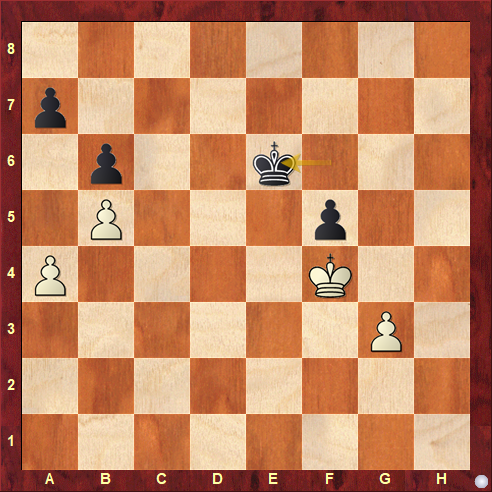 Instead of 52.Kf3 or even 52.Ke3, Maatman, perhaps frustrated with the inevitable draw, short-circuited with 52.Kg5?? when after 52…Ke5 53.Kg6 f4 Black’s king was much quicker than White’s. A quite tragic accident.