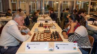 Another success for Mary Ann Gomes against a veteran: this morning Oleg Romanishin had to bite the dust. The Ukrain grandmaster suffered during the entire game from a bad bishop and Gomes very patiently exploited this, until Romanishin had had enough and could start mentally preparing for a tough second part of the day…