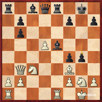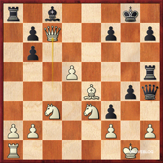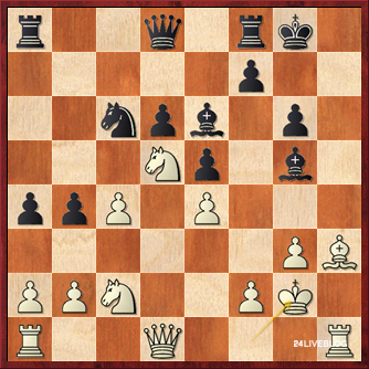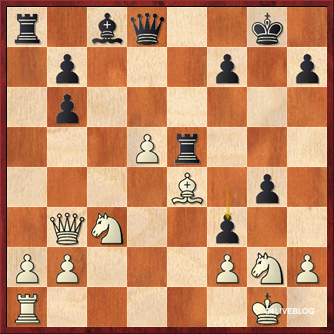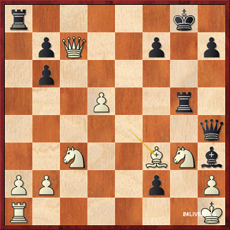 In huge time-trouble, Jorge Cori has missed a good move (after 23.Nf4 instead of 23.Ne3 White should be able to weather the storm) and now he has to sacrifice his queen. White gets two pieces for it, and this should be very good for Black but according to our tournament director Van Wely this will not be so easy to win. With so little time, however, we have to fear for the Peruvian GM’s life once again.