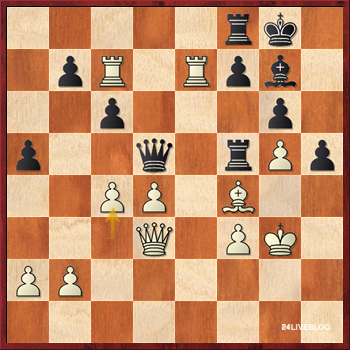 Timman was dissatisfied with his move 29.Rbc1: ‘I completely missed the reply 29…b5!, after which I have just lost two tempi,’ the Dutchman said. With hindsight, he would have wanted to play 29.f4, but it probably isn’t too much for White.