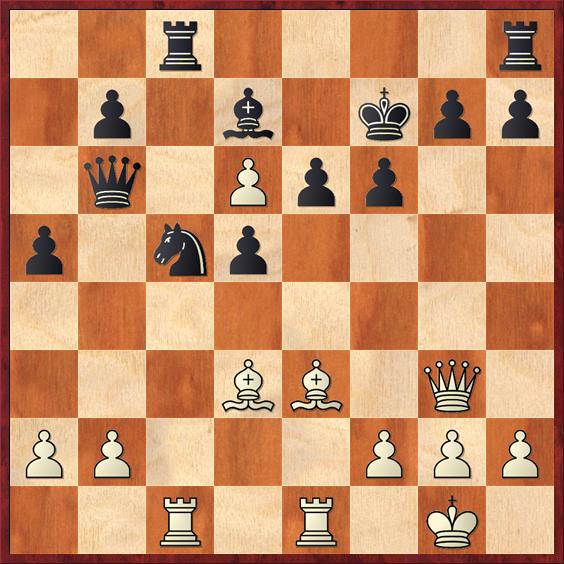 12…Ld4+ 13.Kh1 Pe3 14.Tf2 Pxc4 15.bxc4 Lxf2 16.Dxf2 Pe5 17.Pcd5 Tb8