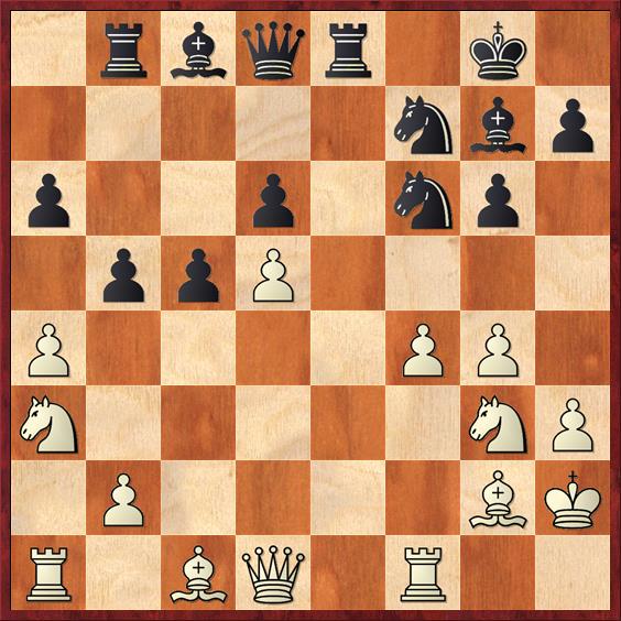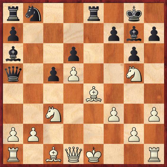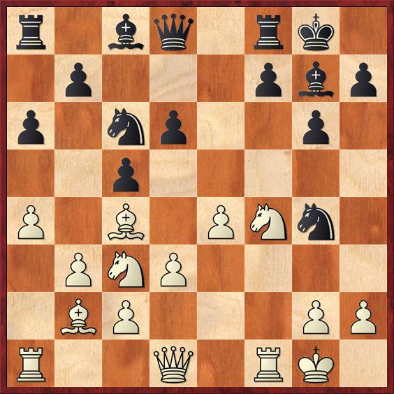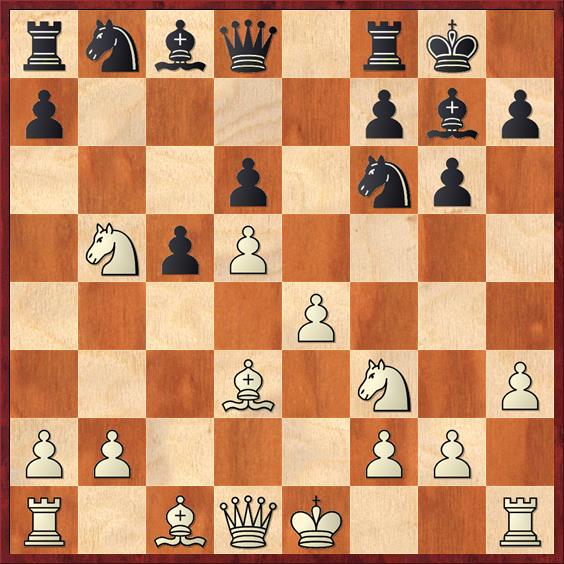 14…f5 15.Kf2 fxe4 16.Pcxe4 en zwart heeft meer materiaal, maar minder compensatie. Wit zet zijn paard op e6.