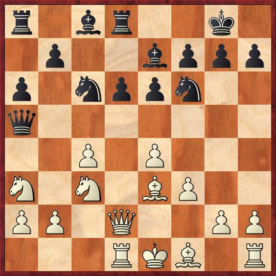 Na deze fout is het meteen helemaal mis met wit. Guramishvili had nog gekeken naar 12.Df2 Pd7 (of zelfs 12…Te8 13.Lb6 Db4 “of een ander veld. Haar stukken blijven slecht geplaatst.”.