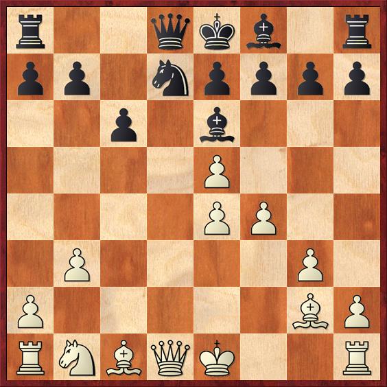 In de commentaarzaal werd 11…f6 gesuggereerd. Na 12.f5 Lxf5!? (de computer geeft hier 12…Lg8 aan, wat ongetwijfeld de beste zet is) 13.exf5 Da5+ 14.Kf1 Dxe5 15.Dc2 heeft zwart te weinig voor het stuk.