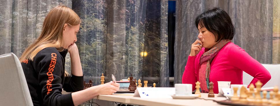 “Gisteren speelde ik goed maar kon ik niet winnen, vandaag speelde ik slecht en won ik wel,” zei de altijd zelfkritische Zhaoqin Peng na haar zege op Machteld van Foreest. Bijna de hele partij lang vertrouwde Peng haar eigen stelling niet, en pas na de laatste onnauwkeurigheid van Van Foreest, 27.a3 in plaats van 27.Pc3 met winst van de pion op f5, trok ze de partij met vaste hand naar zich toe.